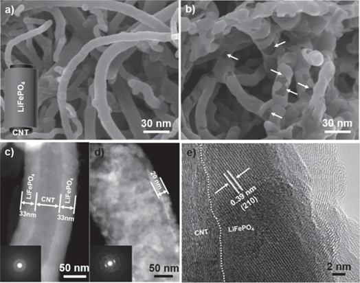 Electrochemically active LiFePO4 ALD film deposited on carbon nanotubes for lithium-ion battery cathode. Deposited in Savannah® system under expo mode at 300˚C.