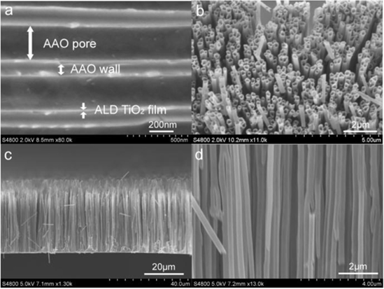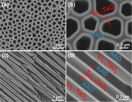 Solid electrolyte Li5.1TaOz deposited by ALD in AAO structure. Deposited in Savannah® under expo mode with up to 470:1 aspect ratio.