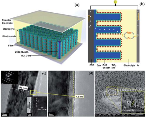 TiO2-ZnO coresheath composite structure for enhanced DSSC. The 1.3nm thick ZnO layer is deposited by ALD in a Fiji® F200 system.
