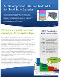 Veeco Cambridge Nanotech provides optimal ALD solutions toward all solid-state 3D Li-ion batteries: fully optimized Lithium oxide thin films with low contamination, tunability of the composition for ternary and quaternary lithiated films, in-situ diagnostic for rapid process optimization and film characterization.