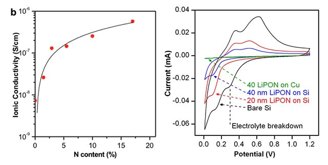 LiPON solid electrolyte deposited by ALD. Ionic conductivity is tuned by %N content in film [2]