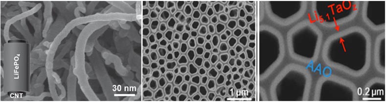 Deposition of Li5.1TaO2 solid electrolyte in high aspect ratio AAO with Li+ ion conductivity of 2E-8S/cm [13]