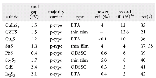 Chalcogenide materials for photovoltaics applications have been explored for the absorber materials where bandgap energies are better suited to achieve higher levels of efficiency ( 31 – 34% efficiency at 1-1.6 eV). Quaternary films can be deposited using ALD techniques, including copper zinc tin sulfide (CZTS). ALD deposited materials can also be used for fabricated buffer / emitter materials (In2S3, ZnS, CdS, and Zn(O,S)).